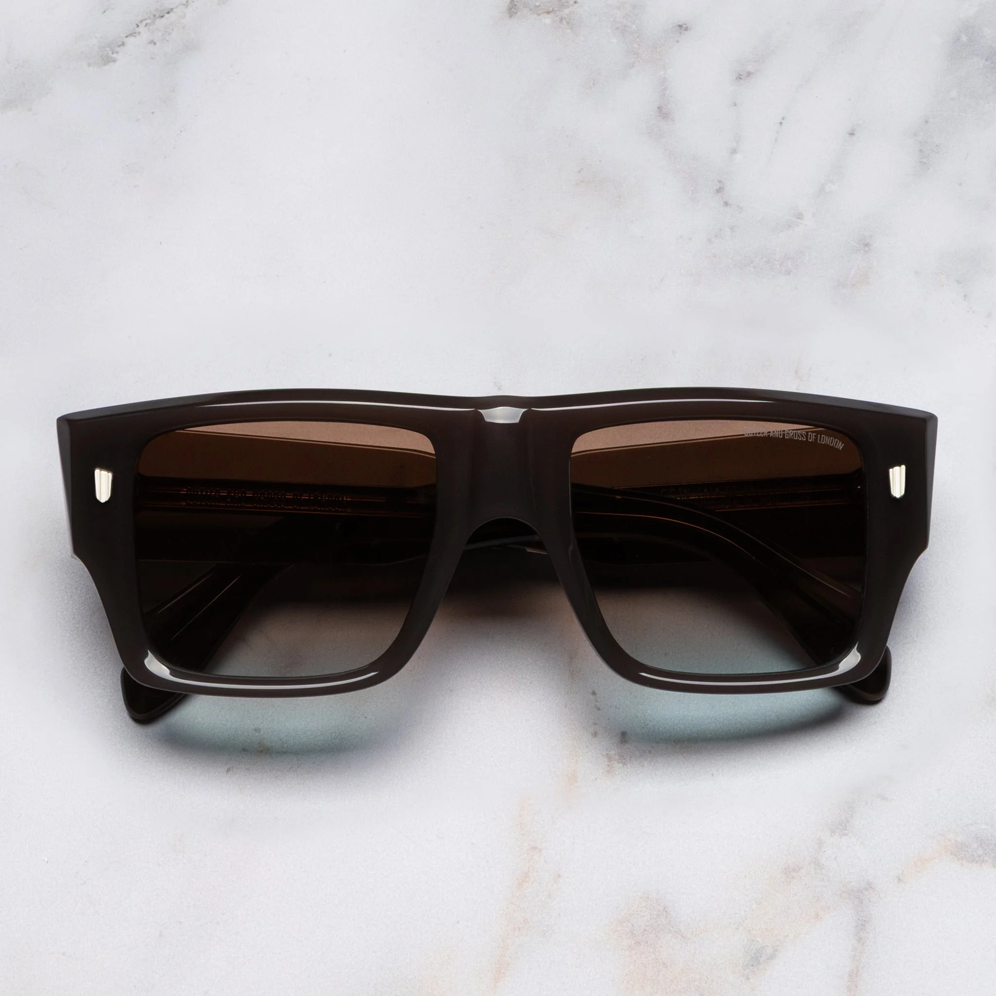 Inspired by an archive Cutler and Gross frame worn by Grace Jones in the 70s, the 1414 sunglass is shaped to an oversized square with a blocky browline. Polished Oyster pins and Modernist core wire add signature prestige. Details - 100% UVA and UVB lenses - Oyster frontal pins - Compass Star temple pins - 7-barrel hinges - Fender temples - Modernist core wire - Gold-foil logo on inner temple - Handcrafted in Italy by expert craftspeople, read more about our craftsmanship story Size & Fit SKU: CGSN-1414-54-03 Frame shape: Rectangle Temple length (mm): 150 Lens width (mm): 54 Bridge width (mm): 21