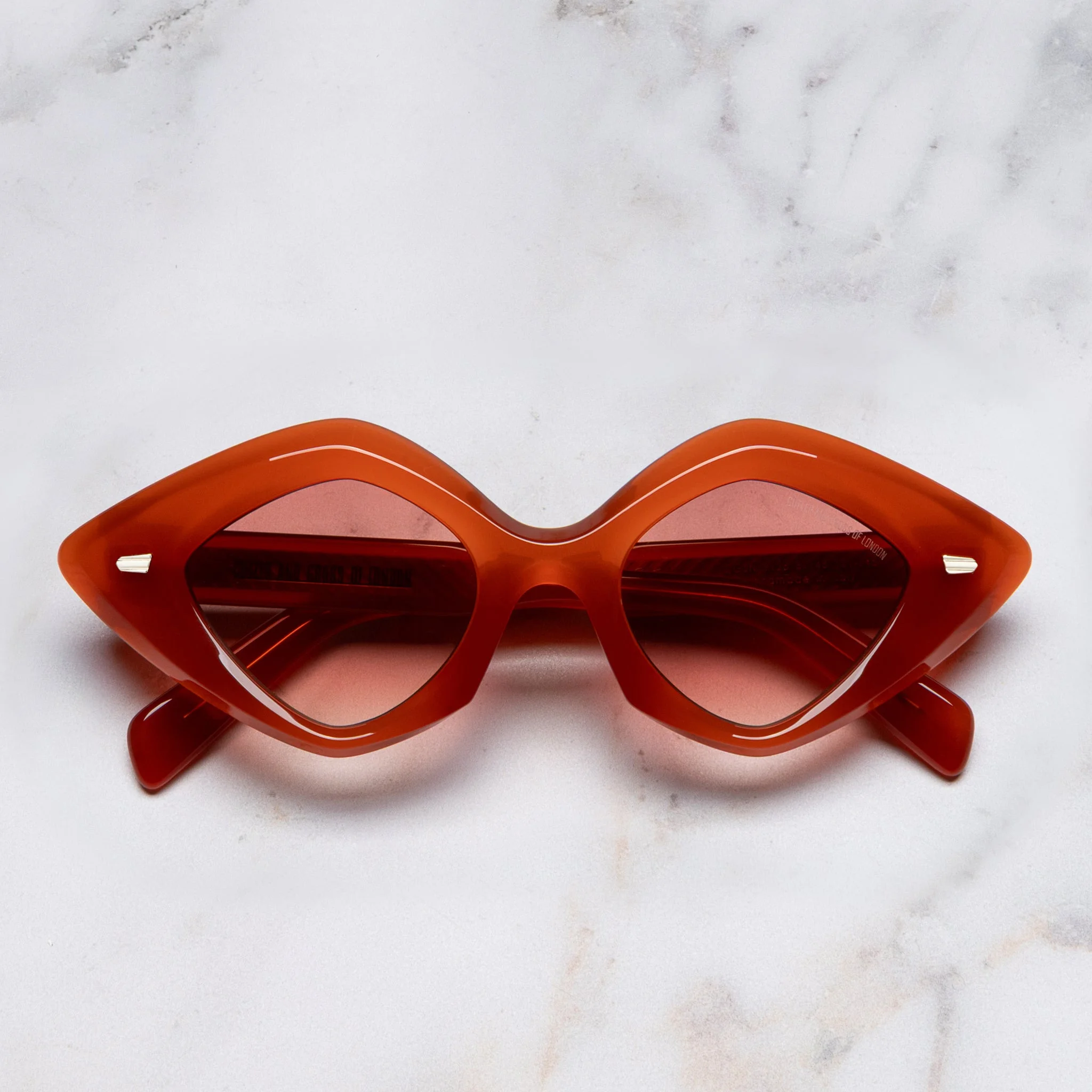 The etymology of the 9126 sunglass stems from an archive design originally worn by icon and Cutler and Gross customer Elton John. Sculpted by hand with chamfered edging, the eccentric silhouette pairs a curved browline with angular lugs. Signature Oyster and Compass Star pins accent the frame. Details - Handcrafted in Italy by expert craftspeople, read more about our craftsmanship story - Horizontal Oyster frontal pins - 5-barrel hinges - Compass Star temple pins - Hazard core wire - Gold-foil logo inside temple - Minimal temple tips - Need help? Read our full Glossary of Terms Size & Fit SKU: CGSN-9126-48-B1 Frame shape: Oversize Temple length (mm): 150 Lens width (mm): 48 Bridge width (mm): 21