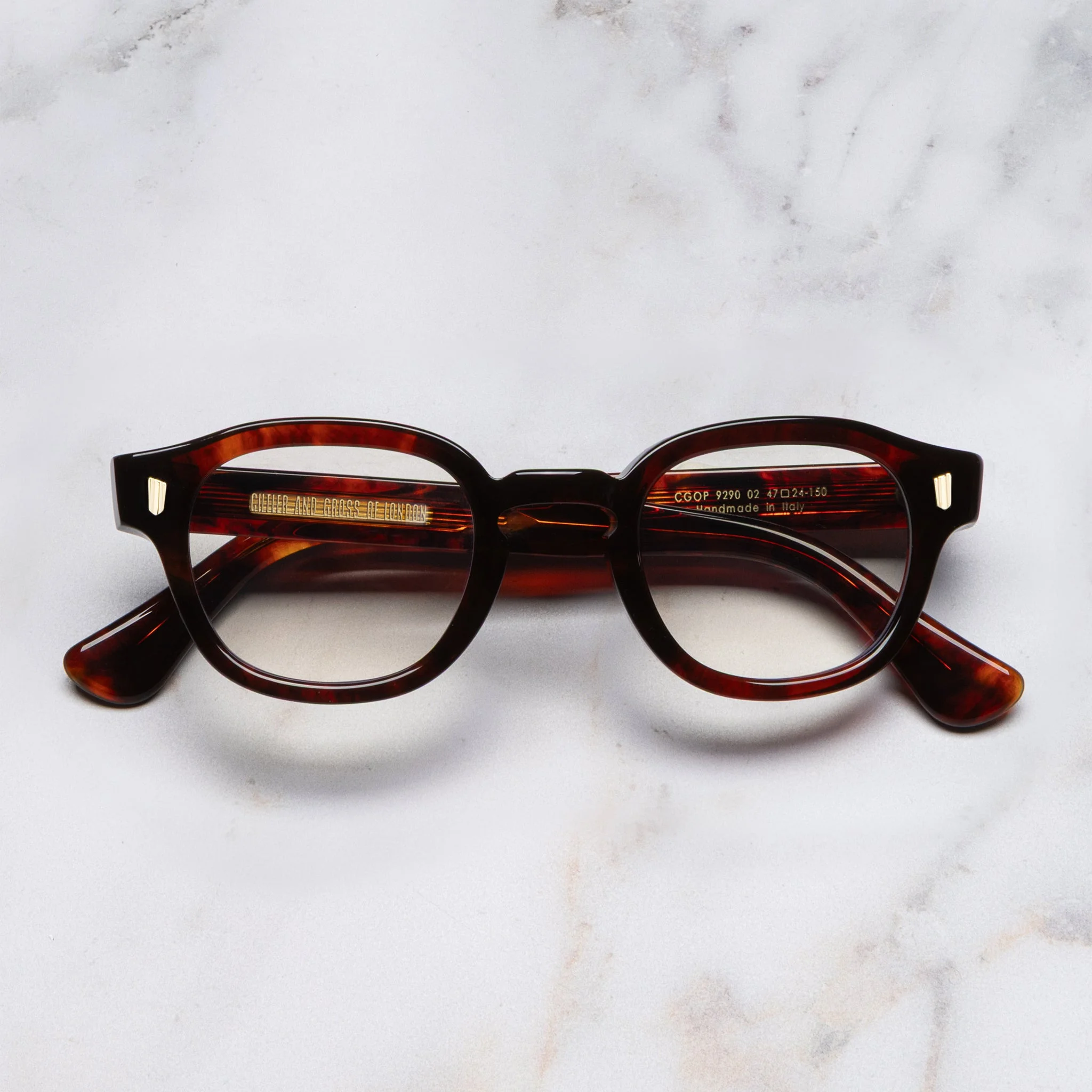 As one of Hollywood's original heartthrobs, James Dean made an everlasting stamp on popular culture during his short time in the spotlight. The 9290 is a rounded-square frame with high brow lines and a recessed nose bridge, inspired by the styles Dean was often photographed in, those candid portraits now canonised in Americana culture by fans and critics of the silver screen. Details - Handcrafted in Italy by expert craftspeople, read more about our craftsmanship story - Fender Temple Fretboard Core Wire - Double Compass Riveted Temples - Oyster Pin - Hand riveted frontal - Interior Comfort Milling - Need Help? Read our Glossary of Terms Size & Fit SKU: CGOP-9290-47-02 Frame shape: Round Lens width (mm): 47 Temple length (mm): 150 Bridge width (mm): 24
