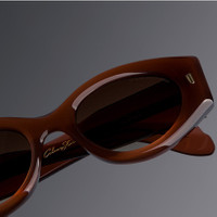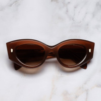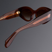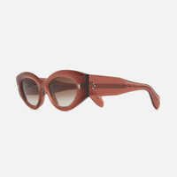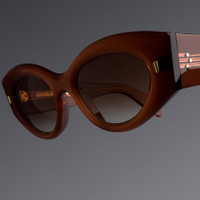 The cat-eye, from a new perspective. Chunky Fender temples structure the butterfly silhouette, which features a swooping browline with emphatic facets. Polished Oyster and Compass Star pins add further detail. Details - 100% UVA and UVB lenses - Oyster frontal pins - Compass Star temple pins - 7-barrel hinges - Fender temples - Modernist core wire - Gold-foil logo on inner temple - Handcrafted in Italy by expert craftspeople, read more about our craftsmanship story - Need help? Read our full Glossary of Terms Size & Fit SKU: CGSN-9317-51-B3 Frame shape: Cat Eye Temple length (mm): 145 Lens width (mm): 51 Bridge width (mm): 21