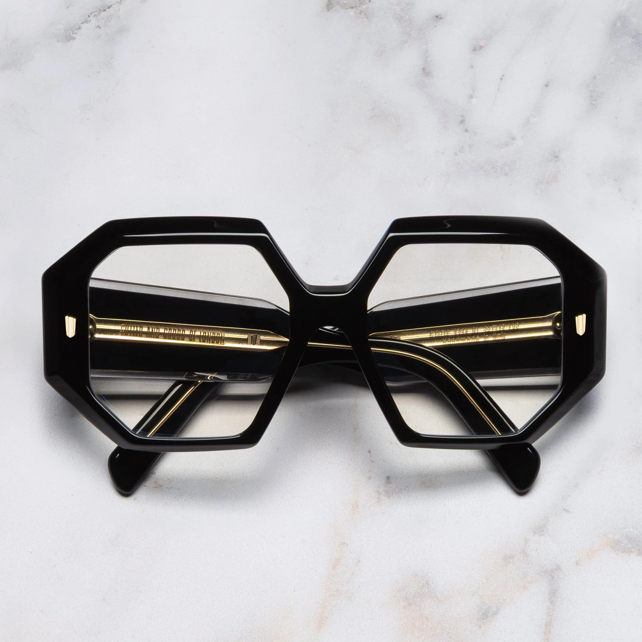 Sculpted to a maximalist octagonal design, the 9324 optical pays homage to the cinematic allure of Sophia Loren and 1950s Hollywood. It is handcrafted with unprecedented 25mm-thick temples and lightened with chamfered crystal edges. This season's Modernist core wire structures the temples Details - Oyster frontal pins - Compass Star temple pins - 7-barrel hinges - Modernist core wire - Desert temple tips - Gold-foil logo inside temple - Handcrafted in Italy by expert craftspeople, read more about our craftsmanship story Size & Fit SKU: CGOP-9324-56-01 Frame shape: Square Lens width (mm): 56 Temple length (mm): 145 Bridge width (mm): 19