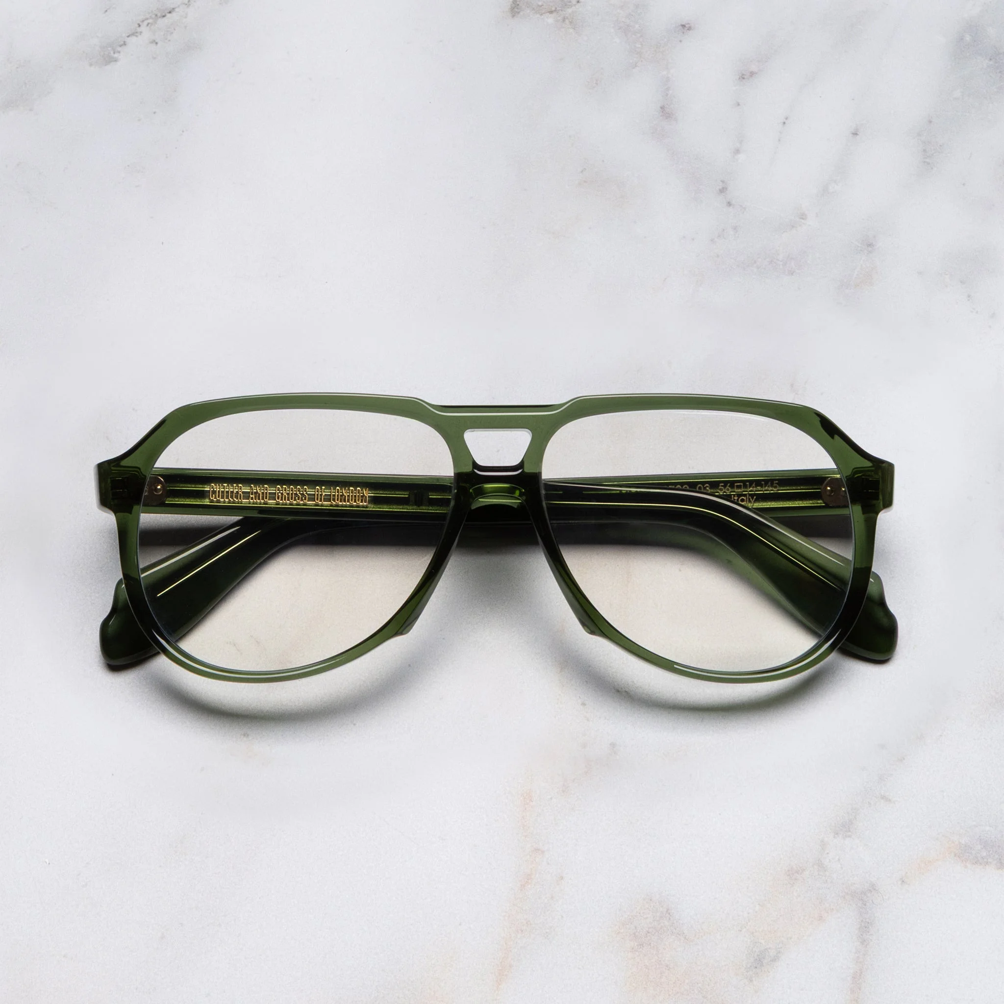 Cutler and Gross's archetypal 9782 sunglass has been retooled as an optical, complete with a slim double nose bridge. Milling and bevelling add subtle dimension to the design, which culminates in Fender temples. Details - Compass Star temple pins - 5-barrel hinges - Fender temples - Modernist core wire - Gold-foil logo on inner temple - Handcrafted in Italy by expert craftspeople, read more about our craftsmanship story Size & Fit SKU: CGOP-9782-56-03 Frame shape: Aviator Lens width (mm): 56 Temple length (mm): 145 Bridge width (mm): 14