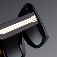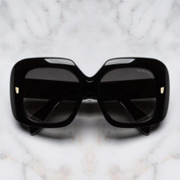 This maximalist frame looks to the large, face-shielding sunglasses worn by luminaries in the 70s. Defined by extravagant proportions, the browline swoops up and around squared lenses, which are accompanied by Oyster pins. Details - 100% UVA and UVB lenses - Oyster frontal pins - Compass Star temple pins - 7-barrel hinges - Fender temples - Modernist core wire - Gold-foil logo on inner temple - Handcrafted in Italy by expert craftspeople, read more about our craftsmanship story Size & Fit SKU: CGSN-9891-56-01 Frame shape: Rectangle Temple length (mm): 145 Lens width (mm): 56 Bridge width (mm): 17