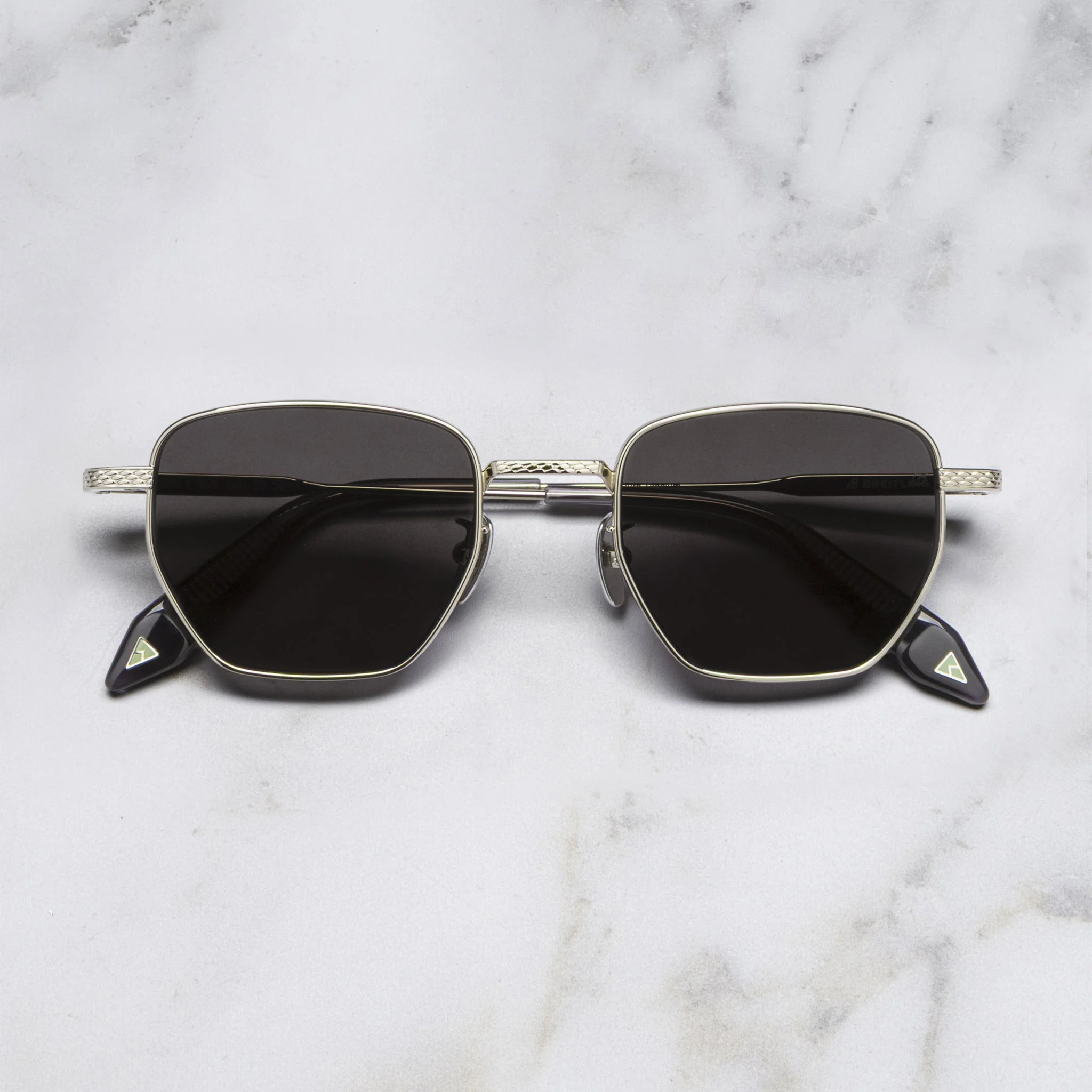 Breitling's heritage house codes meet Cutler and Gross's storied craftsmanship in this sunglass. Inspired by the watchmaker's Superocean Heritage timepiece, intricate Milanese bevelling lends three-dimensionality to the frame, which is handmade in Japan from ultra-light titanium. Temple tips carved from eco-conscious cellulose acetate complete the design. Details - Breitling Eyewear Collaboration - 100% UVA and UVB lenses - Titanium frame - Adjustable nose pads - Engraved temples - Cellulose acetate temple tips - Luminous arrowhead on inner temples - Gold-foil logo on inner temples - Handcrafted in Japan - SKU: BRST-0001-50 Size & Fit Size: Narrow Frame width: 140 mm Temple length: 150 mm Lens width: 50 mm Bridge width: 21 mm Bridge fit: Fits most bridges Size Guide. Find your size and fit. Face shape: Round, oval, heart Discover the Face Shape Guide.