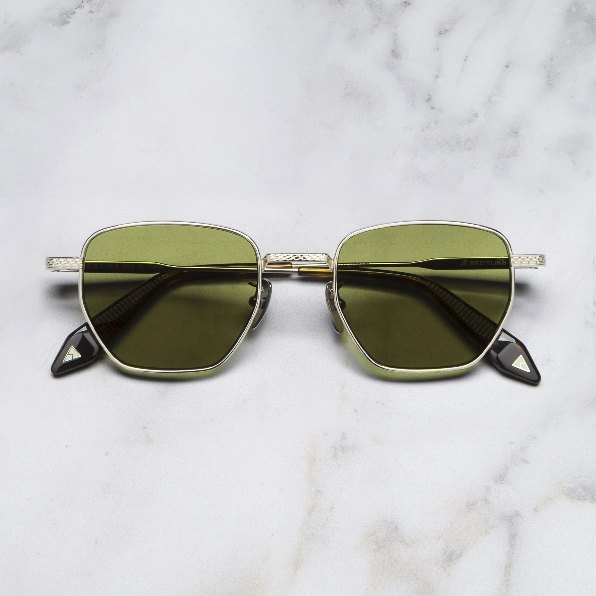 Breitling's heritage house codes meet Cutler and Gross's storied craftsmanship in this sunglass. Inspired by the watchmaker's Superocean Heritage timepiece, intricate Milanese bevelling lends three-dimensionality to the frame, which is handmade in Japan from ultra-light titanium. Temple tips carved from eco-conscious cellulose acetate complete the design. Details - Breitling Eyewear Collaboration - 100% UVA and UVB lenses - Titanium frame - Adjustable nose pads - Engraved temples - Cellulose acetate temple tips - Luminous arrowhead on inner temples - Gold-foil logo on inner temples - Handcrafted in Japan - SKU: BRST-0001-50 Size & Fit Size: Narrow Frame width: 140 mm Temple length: 150 mm Lens width: 50 mm Bridge width: 21 mm Bridge fit: Fits most bridges Size Guide. Find your size and fit. Face shape: Round, oval, heart Discover the Face Shape Guide.