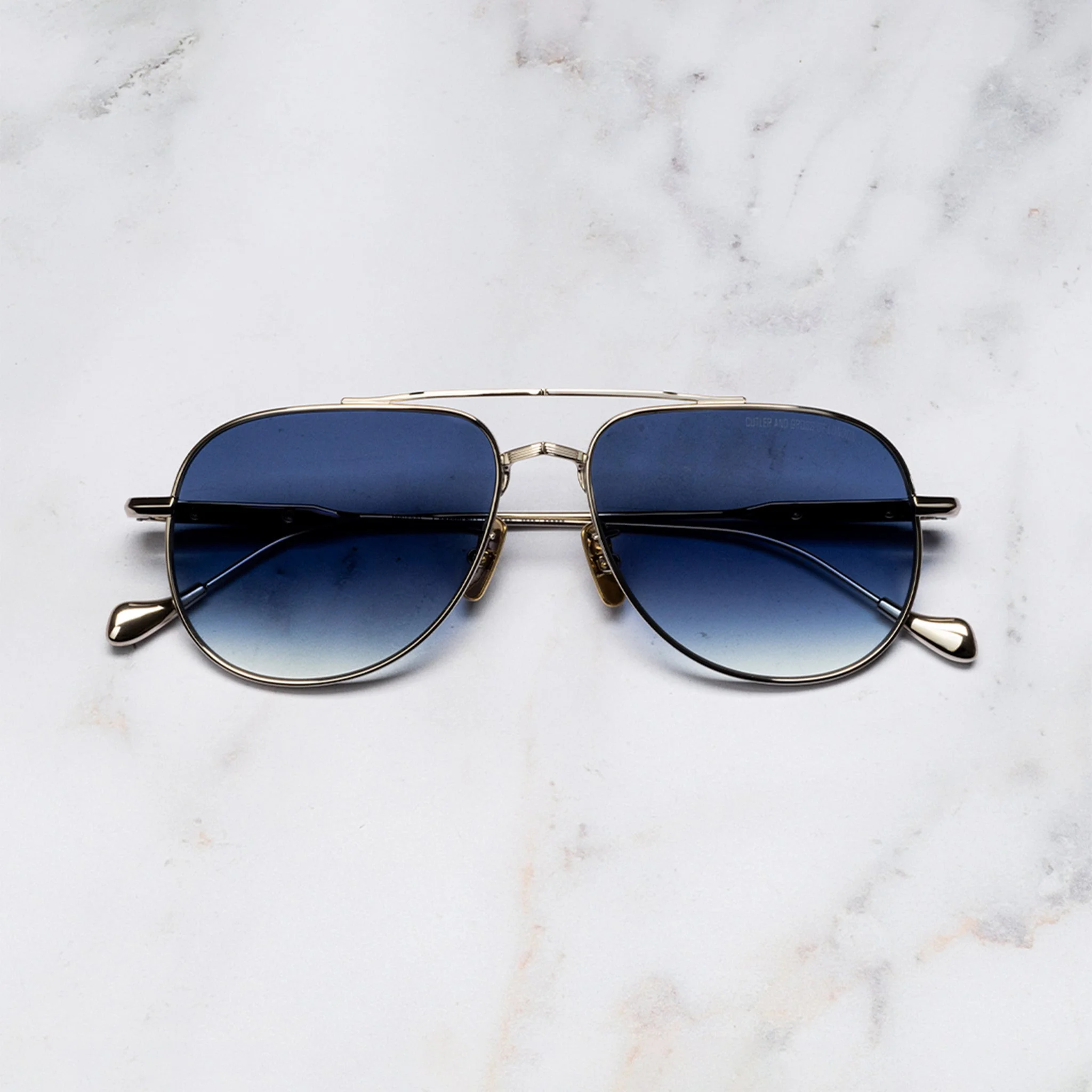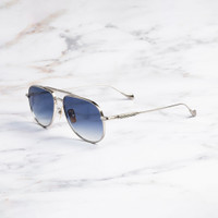 An amplified take on the aviator, created in collaboration with The Great Frog. The classic silhouette is animated with the Lock Down Chain motif, which comes to light on the double nose bridge and temples. Taking six months to create, the frames are handcrafted in Japan from pure titanium. A limited production of 250 frames. Details - Titanium - The Great Frog Collection - 100% UVA and UVB lenses - Engraved double nose bridge - Adjustable nose pads - Bones Link trim at temples - Logo engraved on inner temples - Handmade in Japan Size & Fit SKU: GFSN-018-56-02 Frame shape: Aviator Frontal width (mm): 145 Temple length (mm): 150 Lens width (mm): 56 Bridge width (mm): 15