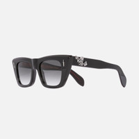 Drawing from The Great Frog's anarchic iconography, a skeletal hand clutching a rose wraps around the temple of this sunglass. It's handcrafted to a gender-bending cat-eye silhouette with a straight brow line. Two Sterling Silver daggers embellish the front, while Lock Down chain core wire structures the temples. Details - Handcrafted in Italy by expert craftspeople, read more about our craftsmanship story - The Great Frog Collection - Hand cast Sterling Silver Dagger frontal pins - 7-barrel hinges - Hand cast Sterling Silver Skull and Crossbones temple pins - Custom Lock Down chain core wire - Gold-foil logo inside temple - Plectrum temple tips - Need help? Read our full Glossary of Terms Size & Fit SKU: GFSN-008-51-01 Frame shape: Cat-Eye Temple length (mm): 150 Lens width (mm): 51 Bridge width (mm): 19