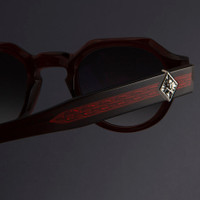 The Cutler and Gross X The Great Frog collaboration fuses heritage handiwork with gothic undertones, and these round sunglasses are exemplary. They're crafted in Italy to a flat-top design that's spliced by Sterling Silver iconography – Dagger frontal pins and Skull and Crossbones emblems at the temples. Flat, gradient lenses complete the set. Details - Handcrafted in Italy by expert craftspeople, read more about our craftsmanship story - The Great Frog Collection - Hand cast Sterling Silver Dagger frontal pins - 7-barrel hinges - Hand cast Sterling Silver Skull and Crossbones temple pins - Custom Lock Down chain core wire - Gold-foil logo inside temple - Plectrum temple tips - Need help? Read our full Glossary of Terms Size & Fit SKU: GFSN-006-48-03 Frame shape: Round Temple length (mm): 150 Lens width (mm): 48 Bridge width (mm): 24