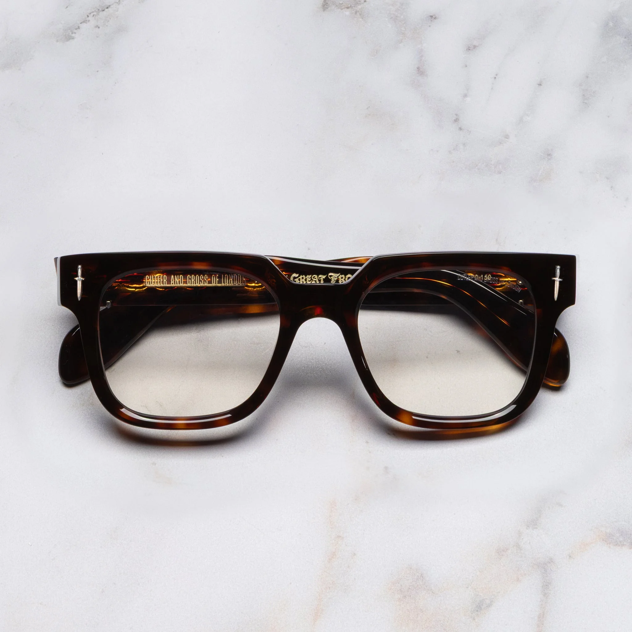 The Great Frog's anarchic vision takes these square glasses into bolder territory. They're detailed with Dagger and Lucky Diamond emblems, which are cast from Sterling Silver by a jeweller in Vicenza. The frame is crafted using weight-saving reverse-milling and structured with custom Lock Down chain core wire. Details - Handcrafted in Italy by expert craftspeople, read more about our craftsmanship story - The Great Frog Collection - Hand cast Sterling Silver Dagger frontal pins - 7-barrel hinges - Hand cast Sterling Silver Skull and Crossbones temple pins - Custom Lock Down chain core wire - Gold-foil logo inside temple - Plectrum temple tips - Need help? Read our full Glossary of Terms Size & Fit SKU: GFOP-007-52-02 Frame shape: Rectangle Lens width (mm): 52 Temple length (mm): 150 Bridge width (mm): 20