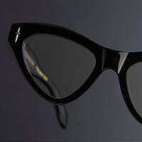 The Cutler and Gross X The Great Frog collaboration combines over 100 years of heritage craftsmanship, and this optical is a case in point. It's sculpted by hand to an eccentric cat-eye silhouette with Dagger frontal pins cast from Sterling Silver. Lock Down chain core wire structures the 50s-inspired shape, pinned by Big Eye rivets. Details - Handcrafted in Italy by expert craftspeople, read more about our craftsmanship story - The Great Frog Collection - Hand cast Sterling Silver Dagger frontal pins - 5-barrel hinges - Big Eye rivets - Custom Lock Down chain core wire - Gold-foil logo inside temple - Plectrum temple tips - Need help? Read our full Glossary of Terms Size & Fit SKU: GFOP-009-52-01 Frame shape: Cat-Eye Lens width (mm): 52 Temple length (mm): 145 Bridge width (mm): 18