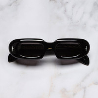 This transcendental frame pays tribute to gothic rave album covers from the 70s. It is handcrafted in our atelier to a Limited Edition design with a straight browbar and curved edges. Cast in polished Sterling Silver, The Great Frog's signature Dagger emblem gilds the frontal, while Lock Down chain core wire threads through the temples. An exclusive run of 60 frames. Details - The Great Frog Collection - 100% UVA and UVB lenses - Sterling Silver Dagger frontal pins - Plectrum temples - Lock Down chain core wire - Gold-foil logo on inner temple - Handcrafted in Italy by expert craftspeople, read more about our craftsmanship story - Need help? Read our full Glossary of Terms Size & Fit SKU: GFLE-015-47-01 Frame shape: Rectangle Temple length (mm): 145 Lens width (mm): 47 Bridge width (mm): 20