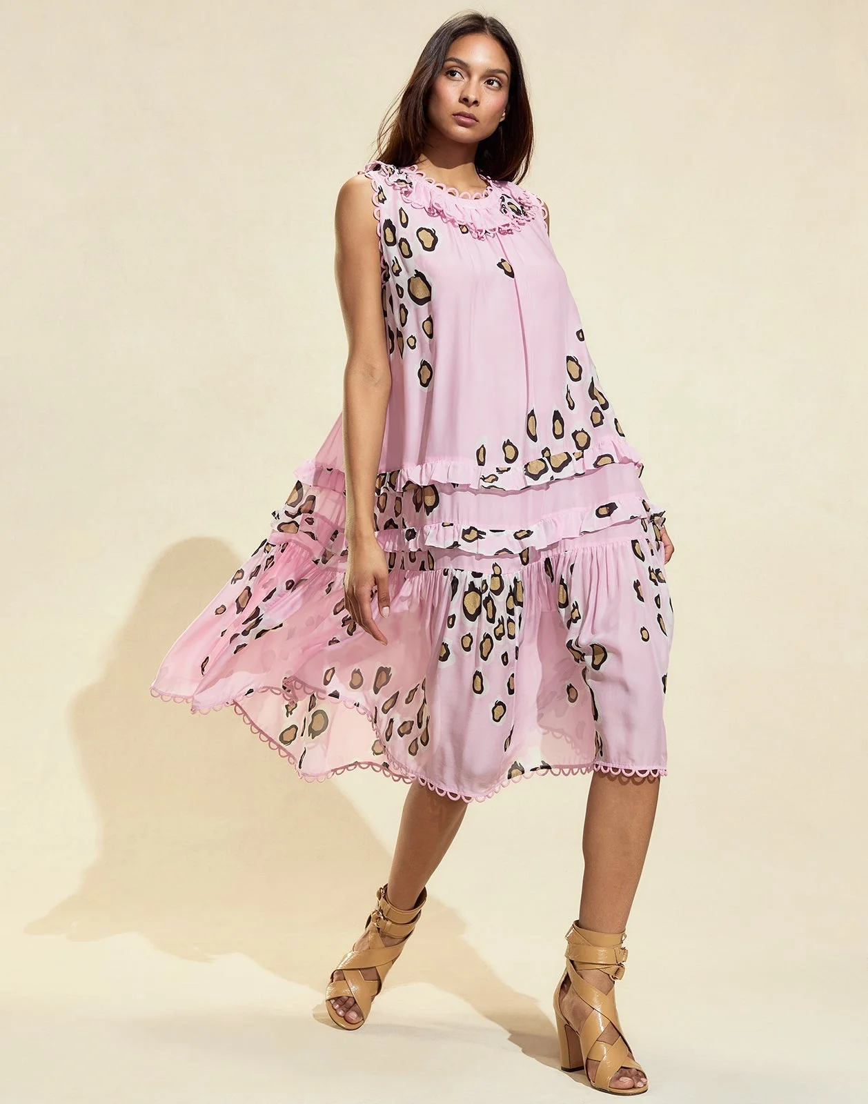 The dress that will convince you to book your flight. Subtle metallic gold foil printed on a lightweight and airy silk fabric. - Spring/Summer 25’ - Composition: 100% Silk - A-line silhouette - Removable slip dress included - Dry clean recommended - Fit: model is 5'9" and wears a size S. - Size S measurements: - Length: 44"