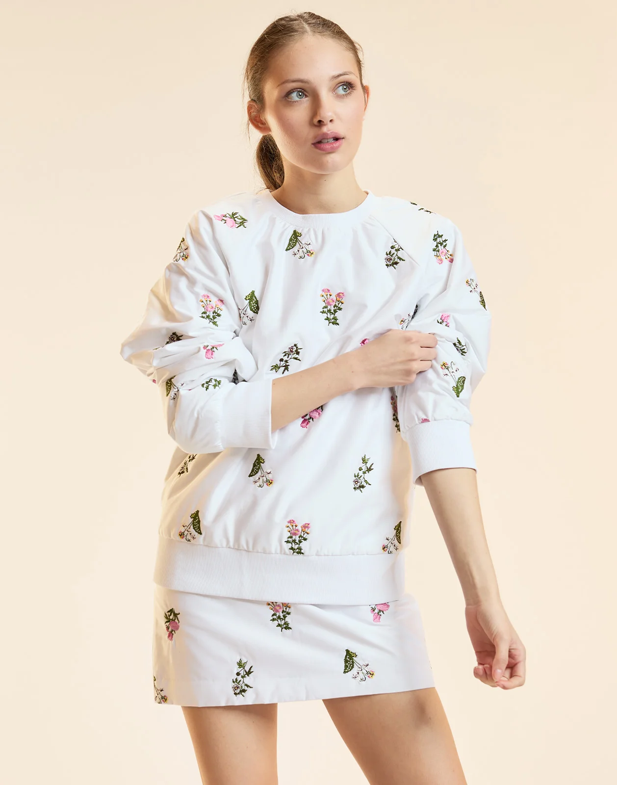 Bouquet Embroidered Mini Skirt