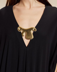 Who said a Kaftan can’t be sexy? The adjustable tie detailing and Calder inspired gold tone applique embellishments make this the ultimate statement dress. Style it barefoot on the beach, or dress it up with the Cece Wrap Heel for a night out. - Spring/Summer ‘25 - Composition: 96% viscose, 4% spandex - Unlined - Do not dry clean, hand wash and hang dry - Fit: Model is 5’9 and wears a size OS - Size OS Measurements: - Length to hem: 52”