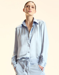Our best selling blouse now in rich solid colors. Versatile and easy to wear. - Fall '25 - Composition: 100% Silk - Dry Clean Only - Front button down closure - Collared Neckline - Standard fit - No stretch - Fit: model is 5'9" and wears a size S. - Size S measurements: - Front length: 27.5" - Sleeve length from shoulder: 23.75"