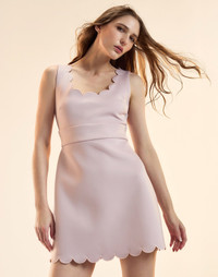 Everybody's favorite buttery soft bonded material reinvented with laser cut scallop edge detailing. - Spring/Summer 25’ - Composition: 100% Polyester - Machine wash cold, hang dry, but dry clean recommended - Fit: model is 5'9" and wears a size 2. - Size 2 measurements: - Full length: 32.75” - Waist: 14.25”