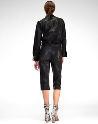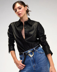 With a clean button-up front and regular fit, this shirt leans into structure while keeping a laid-back attitude. Subtle tailoring through the shoulders and sleeves keep it feeling intentional without being too rigid. Pair it with denim and the Signature Thin Buckle Belt for contrast, or wear it with the Downtown Leather Capris for a full-set look that feels bold. Either way, it’s a statement piece that moves easily between day and night. - Fall/Winter ‘24 - Composition: 100% Leather - Clean by leather specialist - Fit: Model is 5’9 and wears a size S - Size S Measurements: - Shoulder to hem: 25"