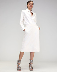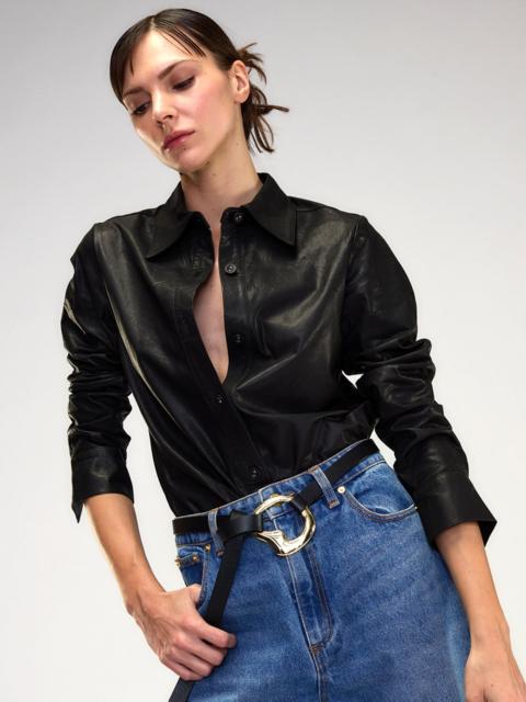 With a clean button-up front and regular fit, this shirt leans into structure while keeping a laid-back attitude. Subtle tailoring through the shoulders and sleeves keep it feeling intentional without being too rigid. Pair it with denim and the Signature Tie Belt for contrast, or wear it with The London Leather Midi Skirt for a full-set look that feels bold. Either way, it’s a statement piece that moves easily between day and night. - Fall/Winter ‘24 - Composition: 100% Leather - Clean by leather specialist - Fit: Model is 5’9 and wears a size S - Size S Measurements: - Shoulder to hem: 25"