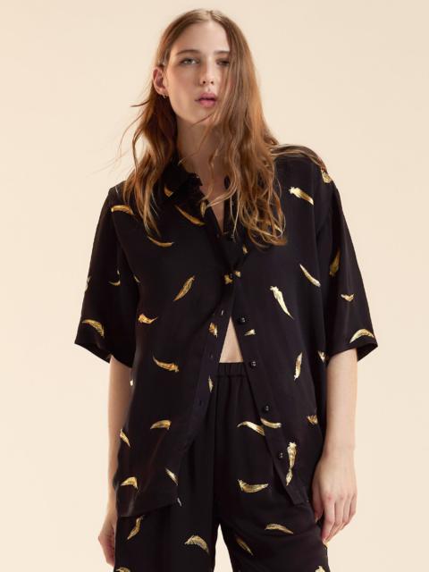 Printed metallic gold foil on a lightweight fabrication. Wear as a set or throw on with anything in your closet. - Spring/Summer 25’ - Composition: 55% Rayon, 45% Viscose - Relaxed fit - Machine wash cold, dry flat, but dry clean recommended - Fit: model is 5'9" and wears a size S. - Size S measurements: - Length from shoulder: 27"