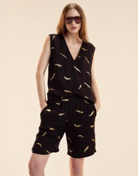 Printed metallic gold foil on a lightweight fabrication. Wear as a set or throw on with anything in your closet. - Spring/Summer 25’ - Composition: 55% Rayon, 45% Viscose - Machine wash cold, dry flat, but dry clean recommended - Fit: model is 5'9" and wears a size S. - Size S measurements: - Length: 26”