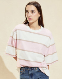 Easy and oversized woven stripe tee, throw this on for an effortlessly cool look. With an easy, relaxed fit, and woven stripes, you'll find yourself wanting to wear this everyday. - Spring/Summer 25' - Composition: 100% cotton - Machine wash cold - Fit: Model is 5'9 and wearing a size S. - Size S Measurements: - Shoulder to hem: 25"