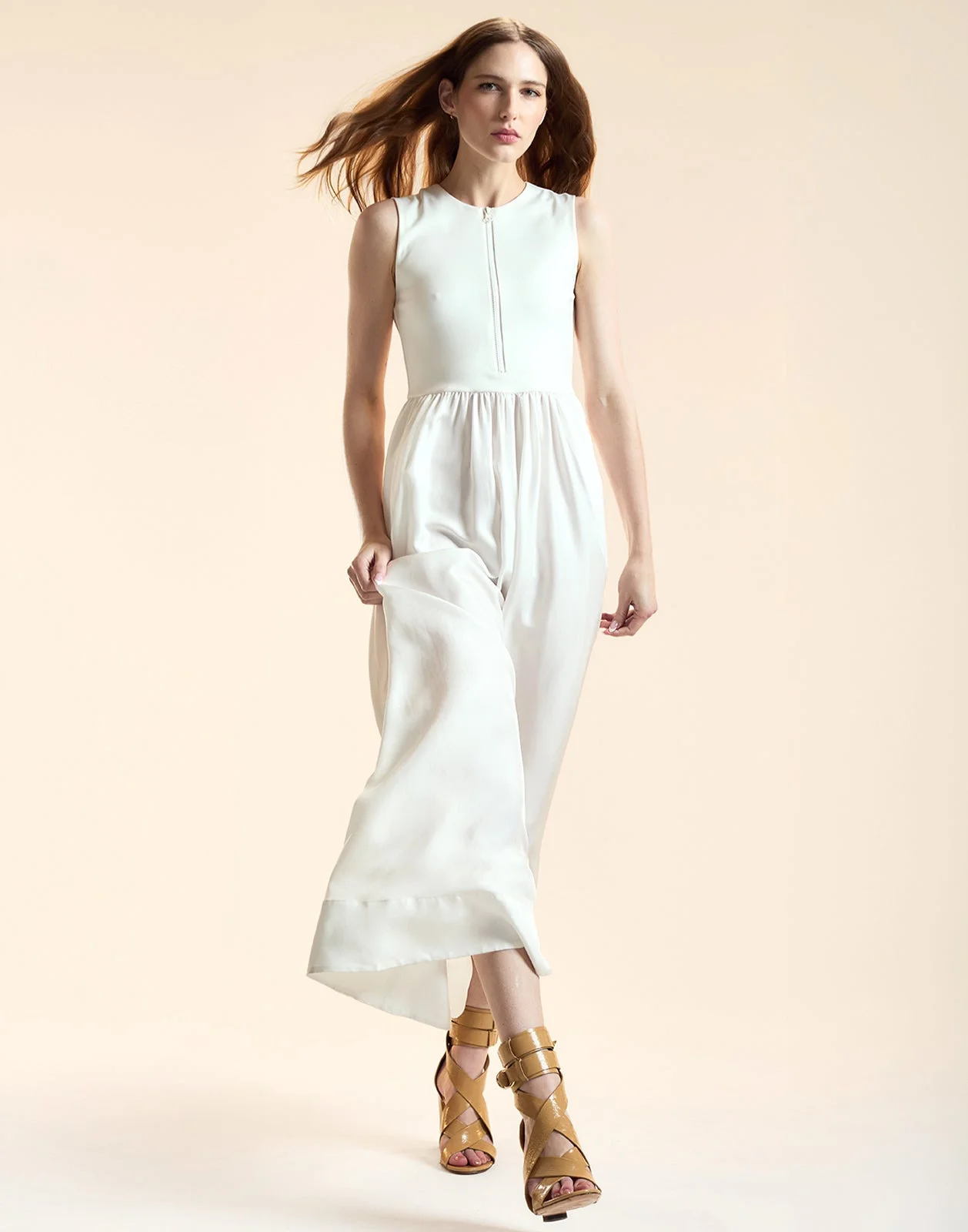 The ultimate pretty meets sporty dress! Sporty lycra on top, pretty silk on the bottom – the perfect combination that makes for an everywhere and anywhere dress. - Spring/Summer 25' - Top composition: 67% Nylon, 33% Spandex/Elastane - Bottom composition: 100% Silk - Dry clean recommended - Fit: Model is 5’9” and wears a size S - Size S Measurements: - Length from shoulder: 54”