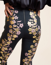 Fit-and-flare pants made from everyone’s favorite bonded material — now featuring a unique metallic print. Flattering, unbelievably comfortable, and easy to style in endless ways. - Composition: 86% polyester, 14% spandex - Unlined - Fitted throughout the leg with slight flare - Exposed zipper detail at center back - High-rise - Stretch - Machine wash cold, hang dry - Fit: model is 5'9" and wears a size 4 - Size 4 measurements: - Inseam: 33" - Length: 44''