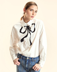 Classic button down silhouette with a twist. - Composition: 100% cotton - Front button down closure - Classic point collar neckline - Regular fit - No stretch - Machine wash cold, hang dry - Fit: model is 5'9" and wears a size S.