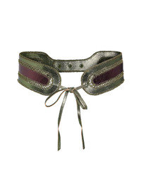 Mixed Metallic Vegan Leather Belt. - Intricate stitch detailing - Adjustable three snap closure - Created for versatile styling: can be worn on the waist or hip - Fabric content: 100% vegan leather - Care instructions: dry clean only Length: 28''-31'' Final Sale