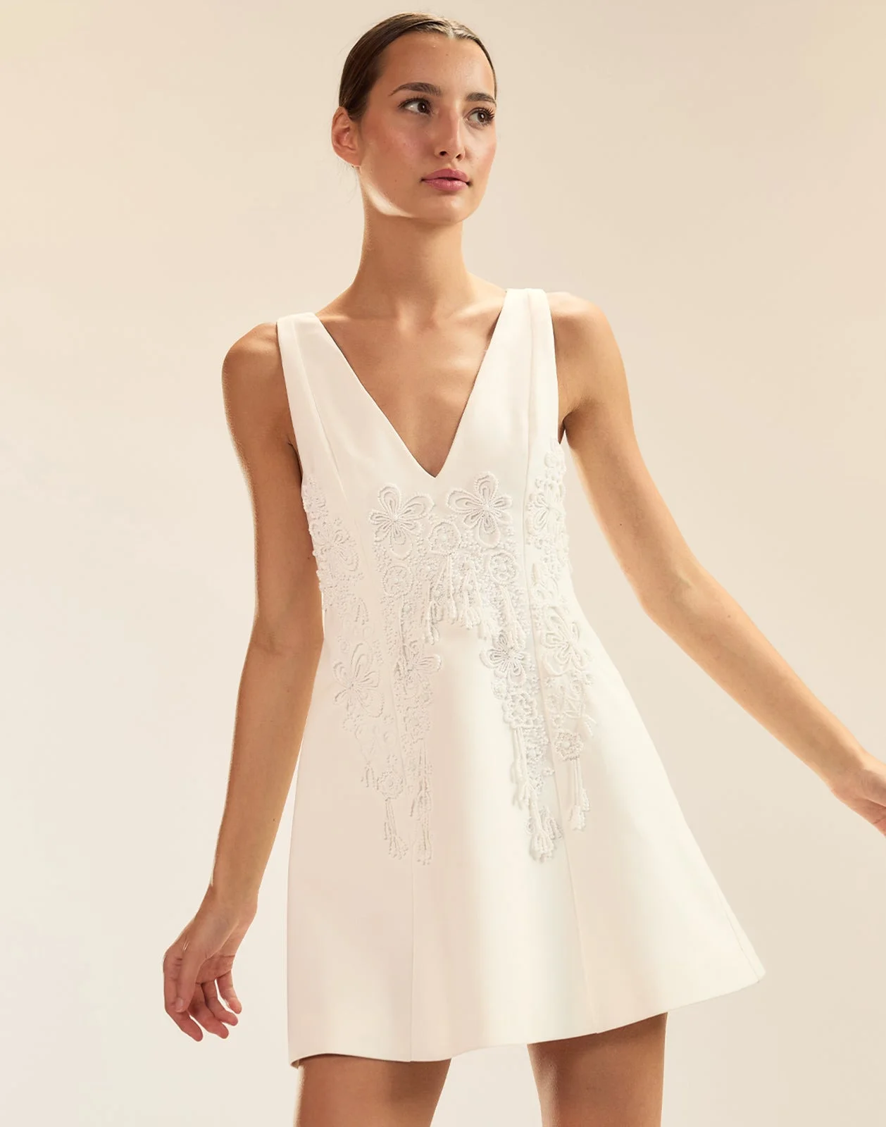 Designed for your most special occasions. Intricate seed beaded detailing with a flattering V-neckline. Such a unique piece means little to no styling is required – just throw on the Cece Wrap Heel to complete this look. - Spring/Summer ‘25 - Composition: 100% Polyester - Hand wash or dry clean - Fit: Model is 5’9 and wears a size 4 - Size 4 Measurements: - Bust: 32" - Waist 28" - Length: 33"