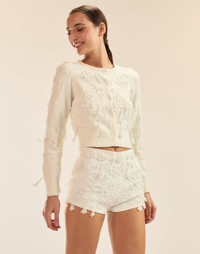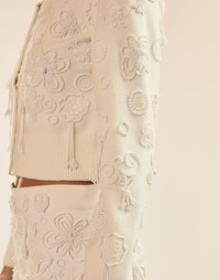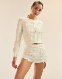 Baby soft seed bead embellished cardi. Cute by itself or the perfect layering piece. Complete the look with the Paloma Shorts or your favorite denim. - Spring/Summer 25' - Composition: 35% acrylic, 35% cotton, 30% polyester - Hand wash or dry clean - Fit: Model is 5'9" and wears a size S. - Size S measurements: - Length: 19"
