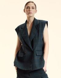 A new silhouette, perfect for layering. An instant classic in a windowpane plaid. - Fall '25 - Composition: 100% Polyester - Oversized fit, double breasted - Hand wash cold, dry clean recommended - Fit: model is 5'9" and wears a size S - Size S measurements: - Front Length: 29"