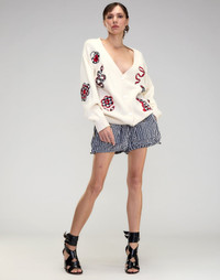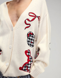 FINAL SALE - Non-returnable Gingham Patchwork Cardigan - Bold Appliques: Gingham and red patchwork - V-neck front button closure - Relaxed and oversized silhouette for a cozy and comfortable fit - Long sleeves finished with ribbed cuffs - Yarn content: 48% nylon, 27% viscose, 22% wool, 5% cashmere - Care instructions: hand wash or dry clean Fit: model is 5'8" and wears a size S. Complete the look: - Geneva Gingham Cargo Shorts - Windowpane Wide-Leg Jeans