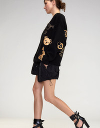 Gold Patchwork Cardigan - Bold Appliques: gold leather patchwork - V-neck front button closure - Relaxed and oversized silhouette for a cozy and comfortable fit - Long sleeves finished with ribbed cuffs - Yarn content: 48% nylon, 27% viscose, 22% wool, 5% cashmere - Care instructions: hand wash or dry clean Fit: model is 5'8" and wears a size S. Complete the look: - Deep Pockets Skirt - Nylon Cargo Shorts