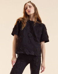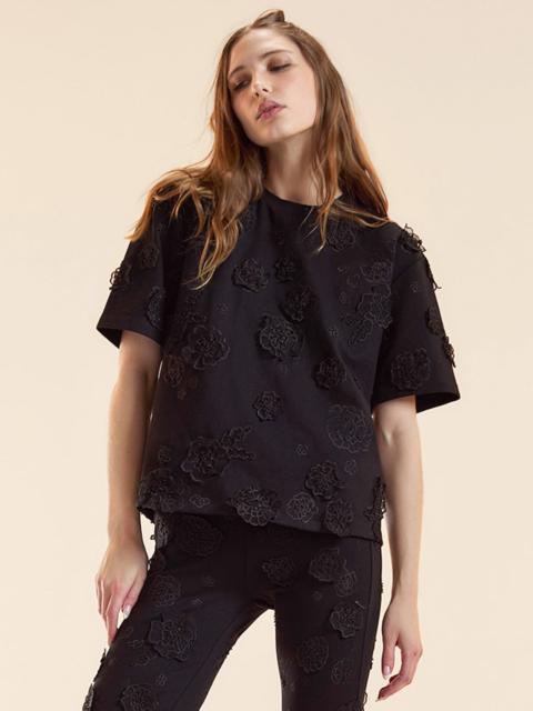 Feels like your favorite stretchy set, but elevated enough for a night out. Finished with 3D floral appliques on a comfortable double-knit base. - Spring/Summer 25’ - Composition: 65% Rayon, 30% Nylon, 5% Spandex - Dry clean only - Fit: model is 5'9" and wears a size S. - Size S measurements: - Full Length: 23.25”
