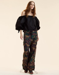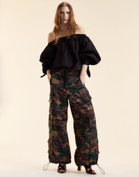 The perfect top to wear with your favorite jeans or cut offs. Lightweight cotton off the shoulder top with tie-up accent cuffs. - Spring/Summer 25’ - Composition: 100% Cotton - Machine wash cold, hang dry - Fit: model is 5'9" and wears a size S. - Size S measurements: - Length: 17.25” - Sleeve Length: 23”