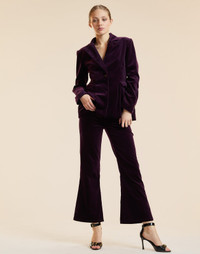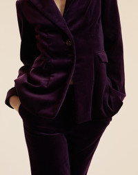 Velvet suit blazer designed for a bold, head-to-toe look. - 100% Cotton - Dry clean only - Pockets - Model is 5'9" and wears a size 2 - Sleeve length: 23.75" - Neck drop: 14.25" - Length: 26"