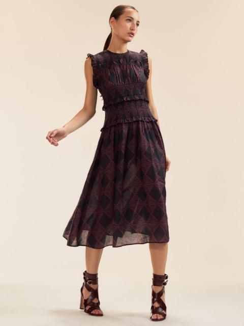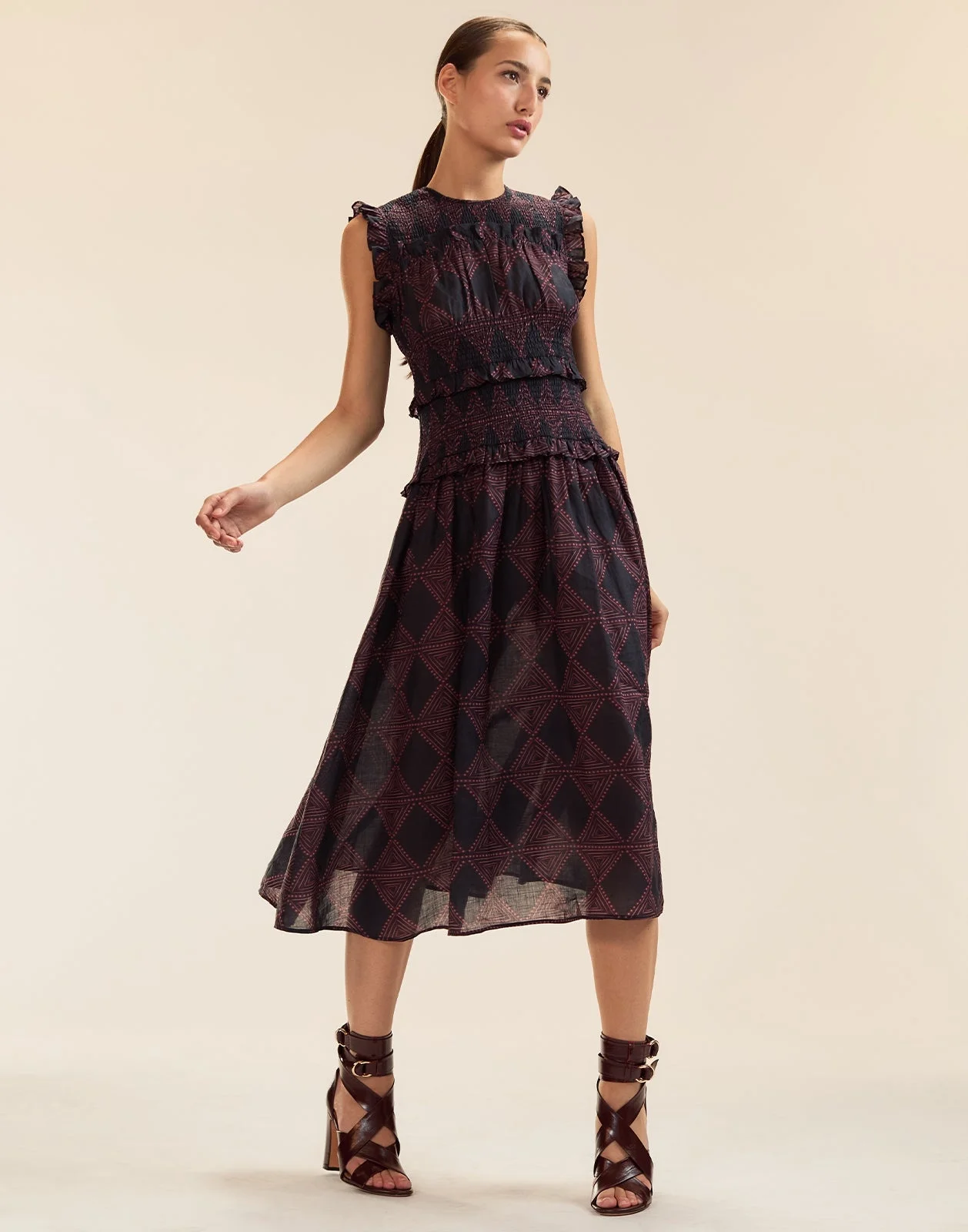 For easy summer days, smocked waist with ruffle detailing on light weight ramie. - Spring/Summer 25’ - Composition: 100% Ramie - Machine wash cold and hang dry, but dry clean recommended - Fit: model is 5'9" and wears a size S. - Size S measurements: - Length: 48"