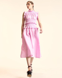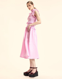 For easy summer days, smocked waist with ruffle detailing on light weight ramie. - Spring/Summer '25 - Composition: 100% Ramie - Machine wash cold and hang dry, but dry clean recommended - Fit: model is 5'9" and wears a size S. - Size S measurements: - Length: 48"