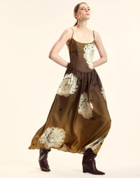 Scoop neck silk printed dress. Easy and unique, you'll never want to wear anything else. - Spring/Summer 25’ - Composition: 100% Silk - Dry clean recommended - Adjustable straps - Fit: model is 5'9" and wears a size 2. - Size 2 measurements: - Full Length: 39" - Bust: 15.5" - Waist 14"