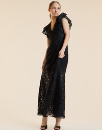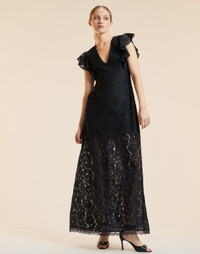 A dress that's an easy yes for holiday dinners, dressed-up moments, and everything in between. - Composition: 100% Polyester Lace - Partially lined - Invisible side zipper - V-neckline - Flutter sleeve - Slight stretch - Dry clean only - Fit: model is 5'9" and wears a size 2 - Size 2 measurements: - Length from shoulder: 58 1/2" - Waist: 27 1/2" - Bottom opening: 79" - V-neck depth from shoulder: 12"