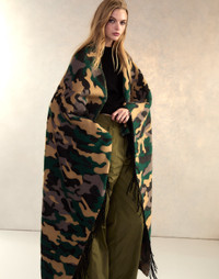 Wool Cashmere Blanket Wrap FINAL SALE - Non-returnable - Premium soft wool and cashmere blend - Camouflage print - Oversized design for versatile wear: drape as a wrap, scarf, or blanket - Soft fringe detailing - Fabric content: 70% wool, 30% cashmere - Care instructions: Dry clean only Fit: One size fits all Dimensions: 50" x 72"