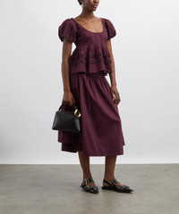 DETAILS Cotton blouse Fit-and-flare silhouette Short puff sleeves Scoop neckline Empire waist Ruffle-trimmed hem Back zip fastening SIZE & FIT Model is 176cm/5'9.5"; Chest: 78cm; Waist: 62cm; Hip: 91cm and wears a size 8 COMPOSITION & CARE 100% Cotton Wash 30°