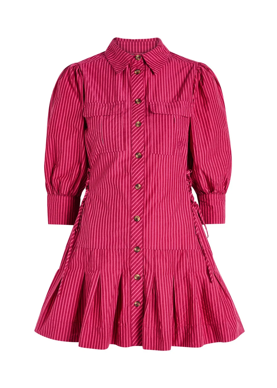 Damson Madder Maisie Striped Cotton Mini Shirt Dress