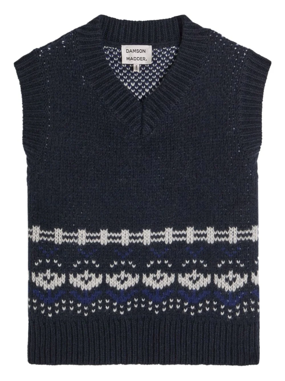 patterned V-neck wool top Highlights - Navy blue - V-neck - Sleeveless Imported Composition Wool 100% Washing instructions Hand Wash