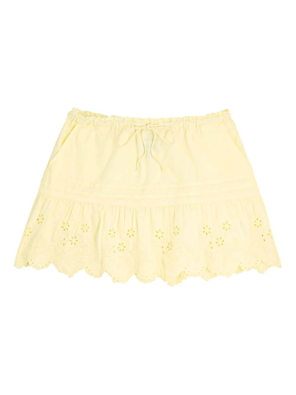 Gabriette drawstring eyelet mini skirt Highlights - Yellow - Cotton - Eyelet detailing - Drawstring - Tiered hem - Scalloped trim - Gathered detail Made in United Kingdom Composition Organic Cotton 100% Washing instructions Machine Wash