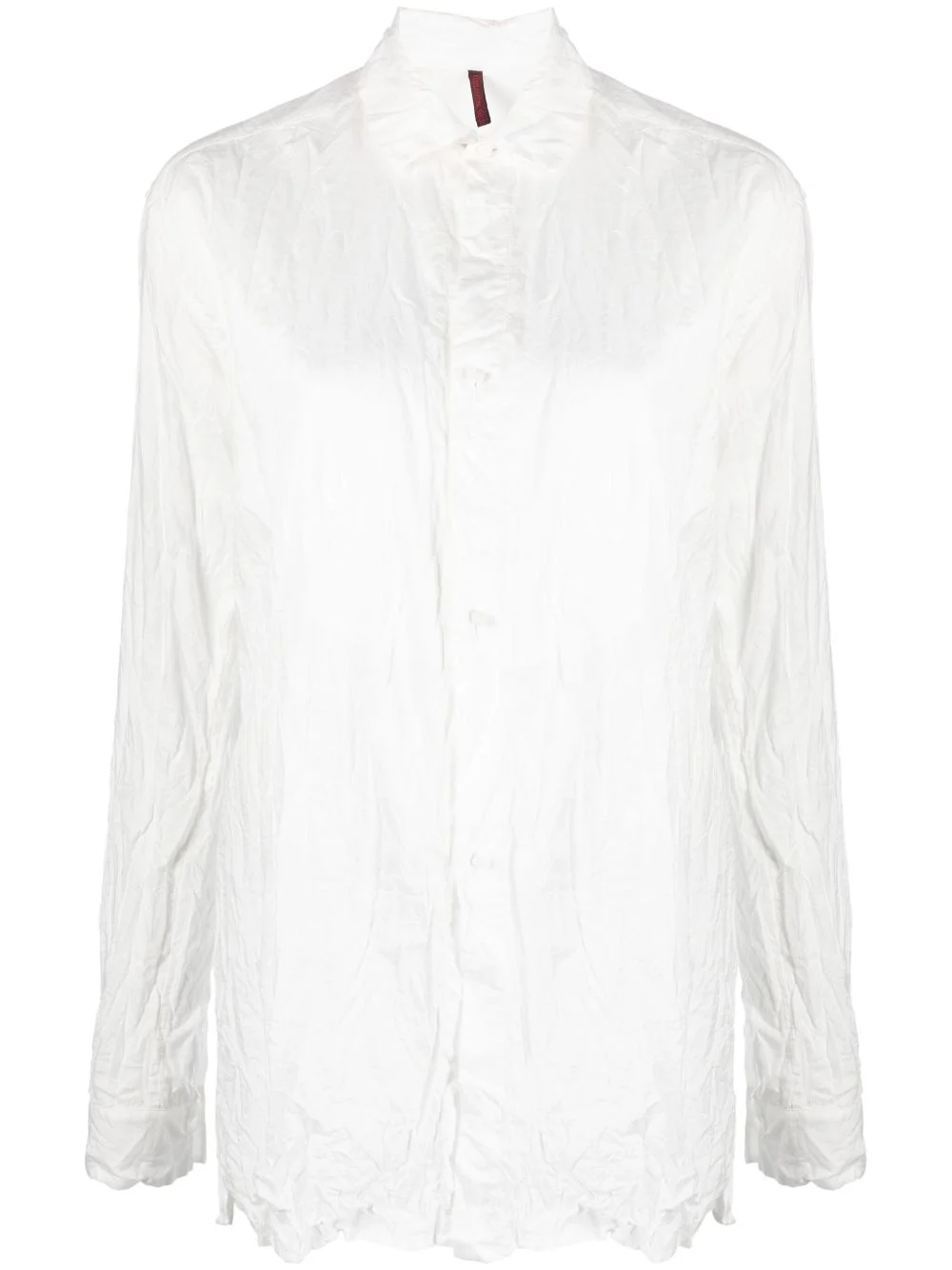 crinkled long-sleeve cotton shirt Highlights - White - Cotton - Crinkled finish - Cutaway collar - Front button fastening - Long sleeves - Buttoned cuffs - Curved hem Made in Italy Composition Cotton 100% SIZE & FIT Model measurements Height 5 ft 11 in(1.8 m) Bust/Chest 31.49 in(80 cm) Hips 36.61 in(93 cm) Waist 24.4 in(62 cm) Measurement BUST 43.3 in(110 cm) Shoulder Width 18.5 in(47 cm) SLEEVE LENGTH 25.59 in(65 cm) WAIST 44.88 in(114 cm) FittingInformation Designed to be unstructured, offering a loose fit throughout Made from a lightweight non-stretch fabric This piece is only produced in one size Washing instructions Hand Wash