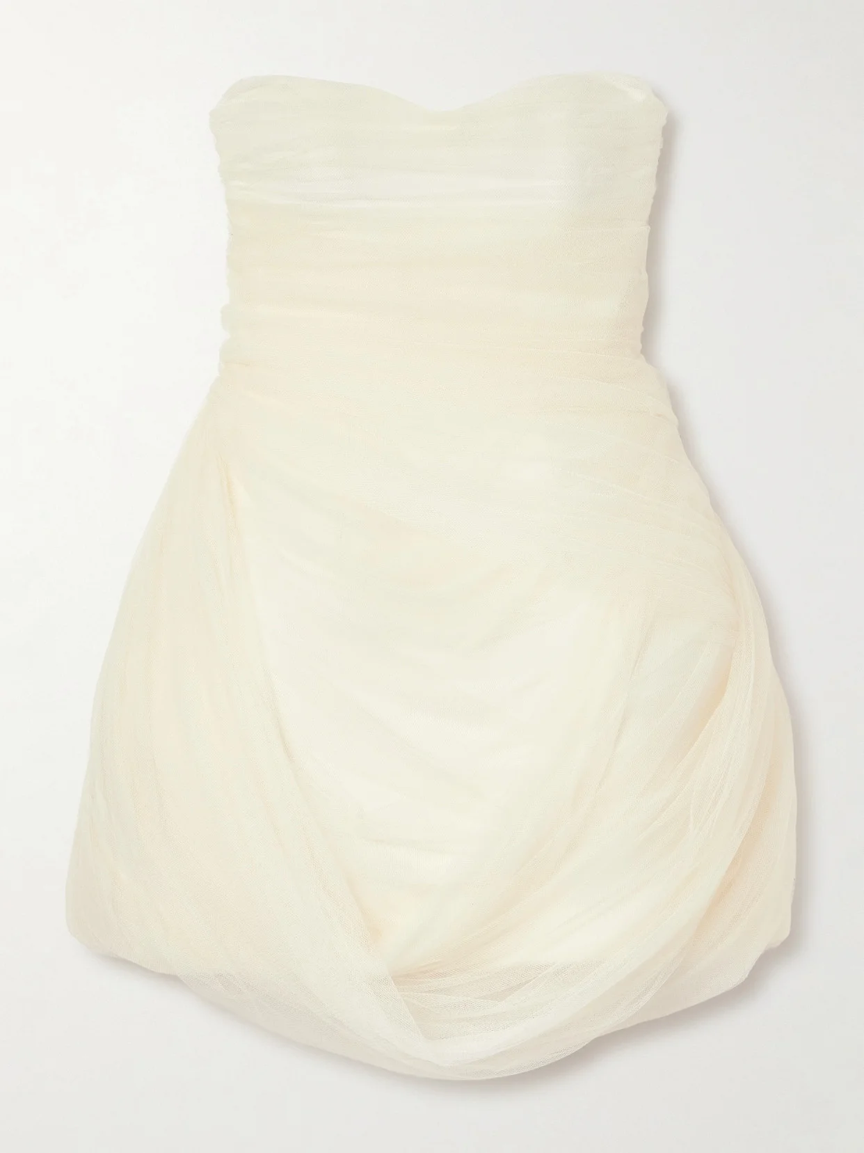 Bernie Strapless Draped Tulle And Satin Mini Dress