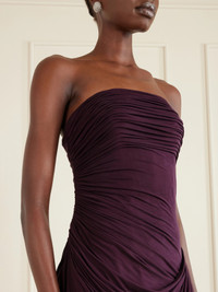 Make your next occasion extra special with Danielle Frankel's 'Harris' gown. Cut from fluid satin-jersey, it has a strapless profile and is ruched and draped in swathes to glide down your figure. There's something so old Hollywood about it.
