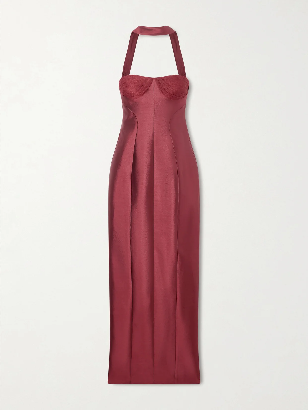 EXCLUSIVE AT NET-A-PORTER. Always the bridesmaid? You simply won't care in Danielle Frankel's stunning 'Lette' gown. Made from oxblood twill enriched with silk and wool, this column style has a boned corset and delicate tulle trims.